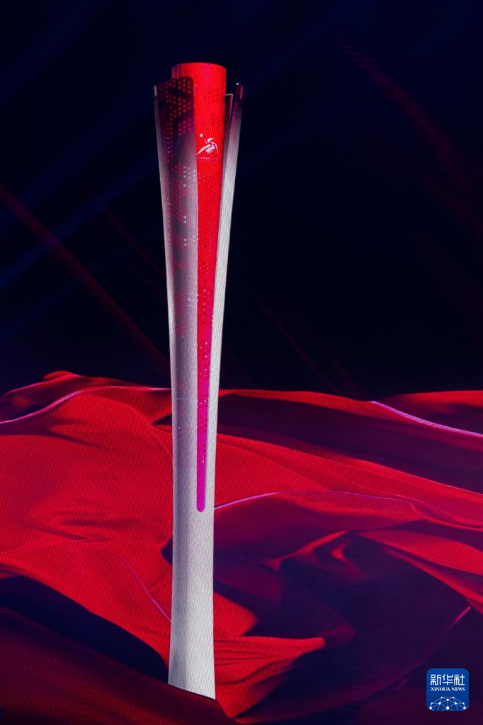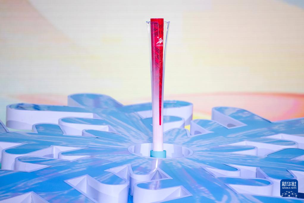 这是10月30日在活动现场拍摄的亚冬会火炬。本届亚冬会火炬主题为“澎湃”,寓意着本届亚冬会将充满活力与激情。