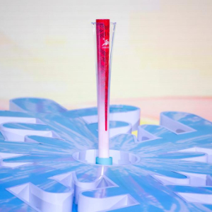 10月30日,活动现场大屏幕显示亚冬会火炬。本届亚冬会火炬主题为“澎湃”,寓意着本届亚冬会将充满活力与激情。