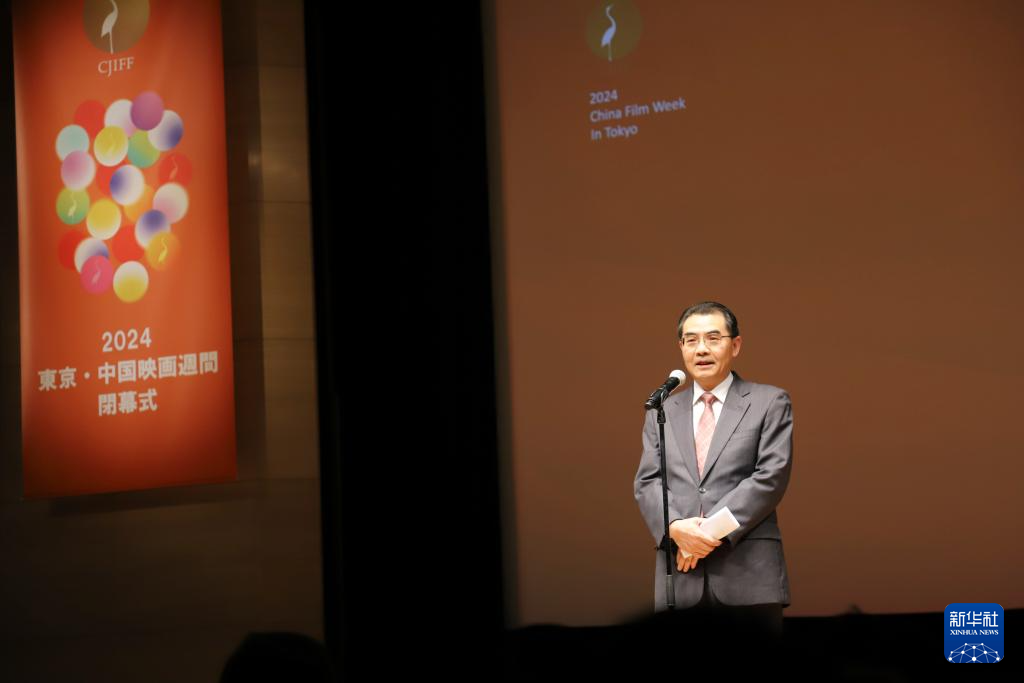 10月29日,在日本首都东京,中国驻日本大使吴江浩在第37届东京国际电影节中国电影周闭幕式上致辞。