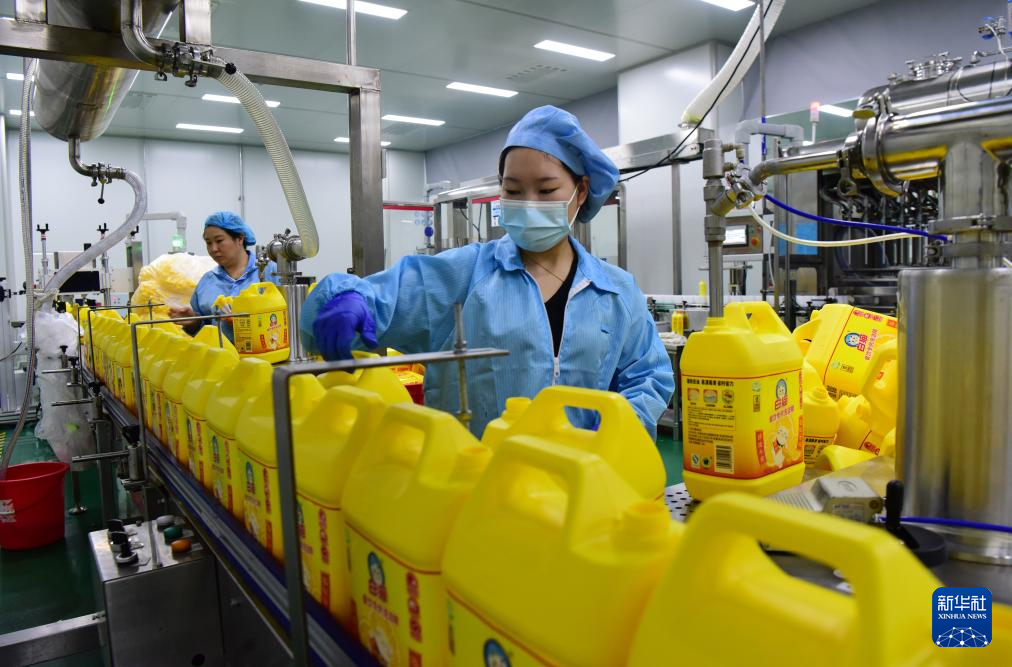 10月31日,工人在河南省鹤壁市宝山经开区一家日用化工企业工作。