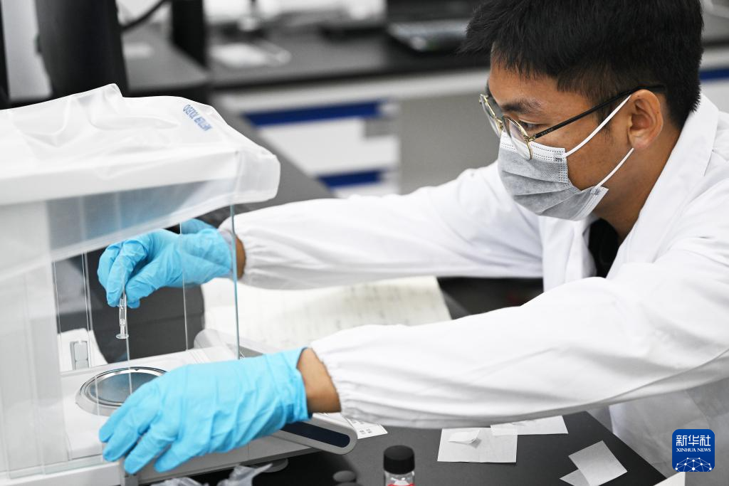 10月16日,天府永兴实验室固碳与生态修复研究团队的科研人员在开展大气集水材料表面自由能测试工作。