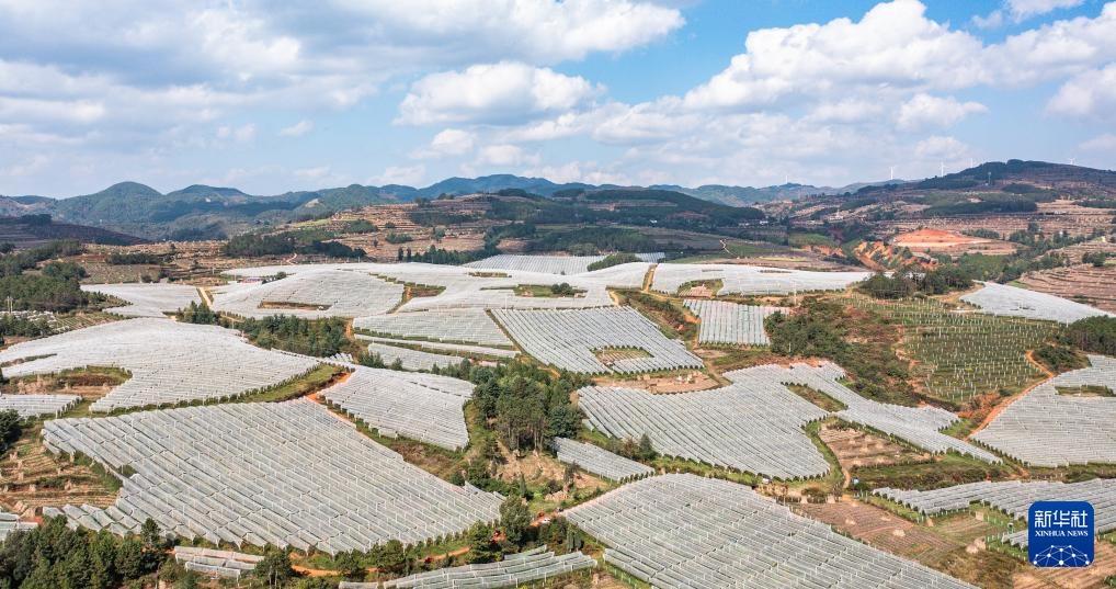 威宁彝族回族苗族自治县黑石头镇雨田果园的苹果基地(10月30日摄,无人机照片)。