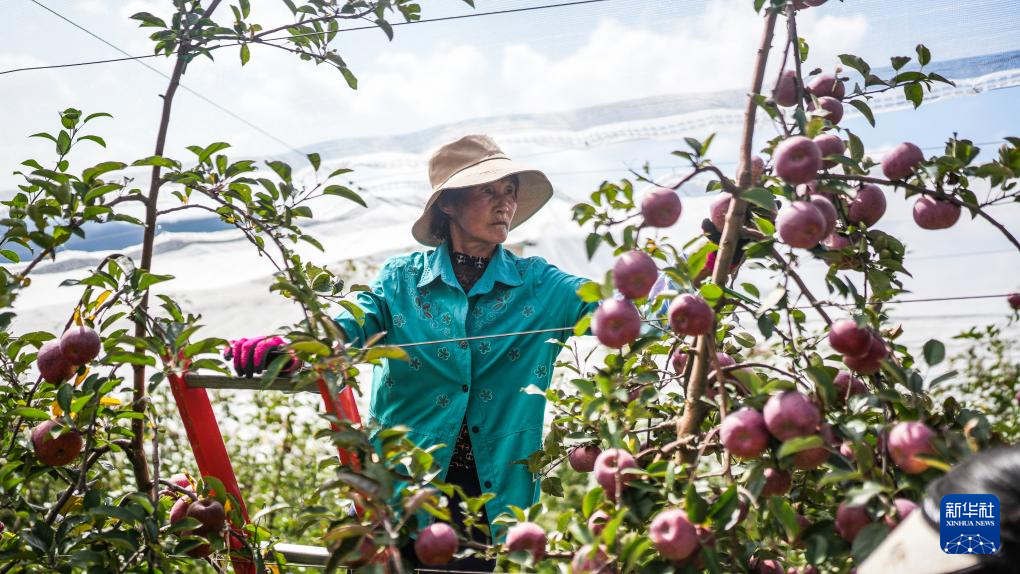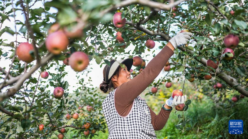 村民在威宁彝族回族苗族自治县黑石头镇新河社区采收苹果(10月30日摄)。