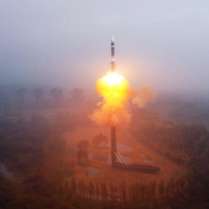 这是朝中社发布的最新型洲际弹道导弹点火升空的图片。