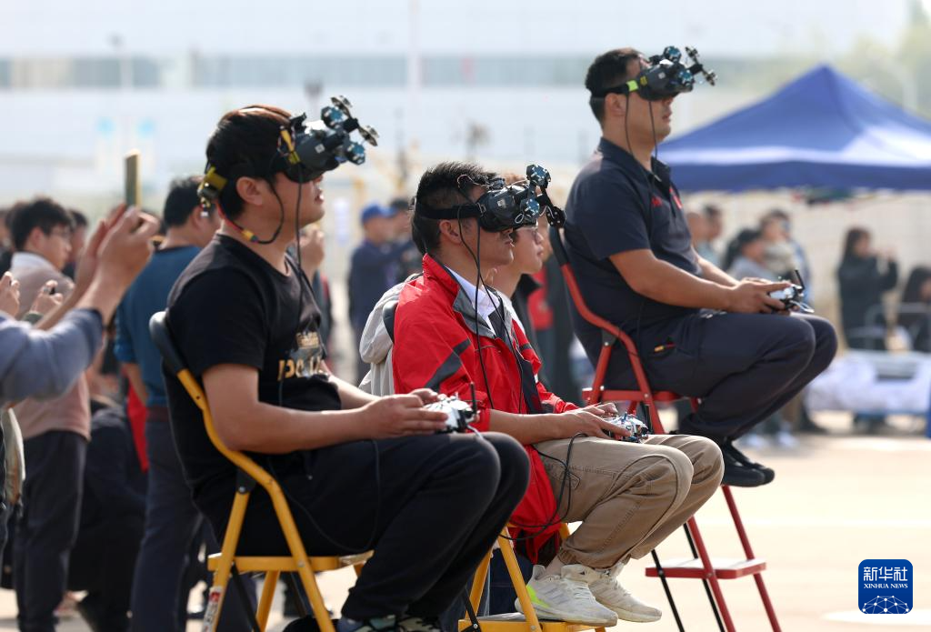 11月1日,飞手操控无人机进行比赛。