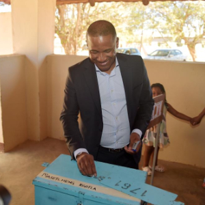 这是10月30日,杜马·博科在博茨瓦纳东南部区特洛昆的一处投票站投票。
