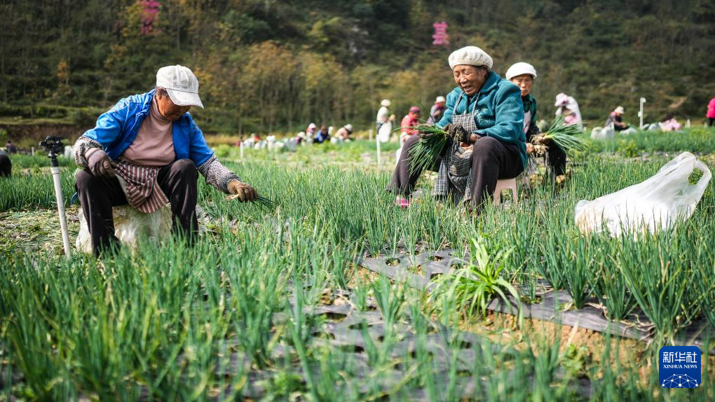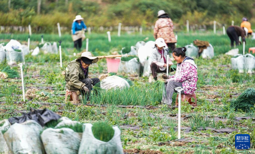 10月31日,村民在赫章县松林坡白族彝族苗族乡的香葱基地里采收香葱。