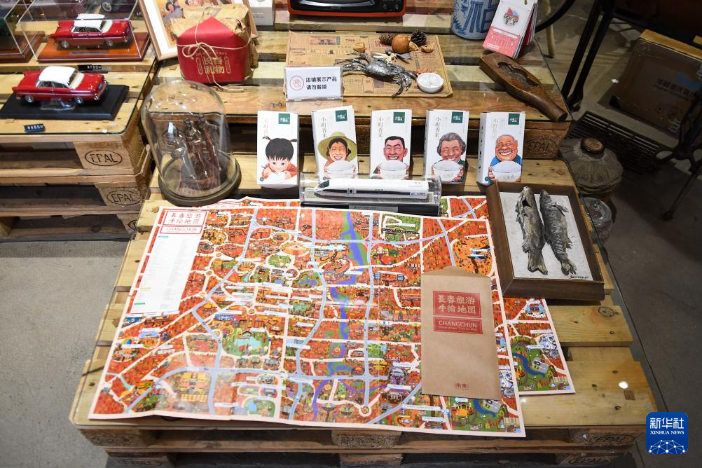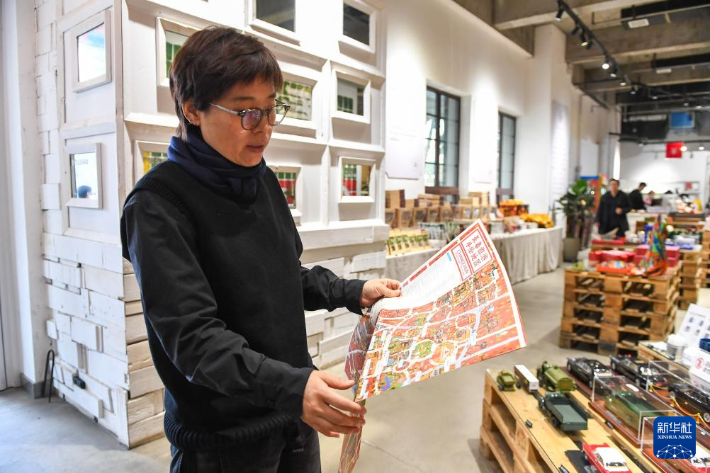 10月31日,在吉林省长春市“长春礼物”概念店,文创产品策划运营师史爽翻开一张长春旅游手绘地图。