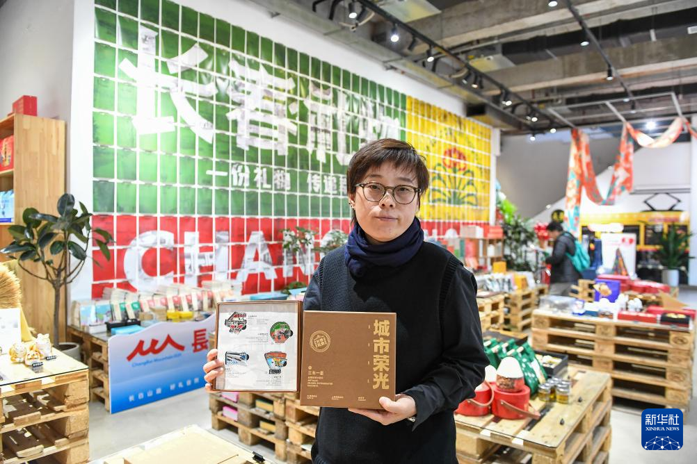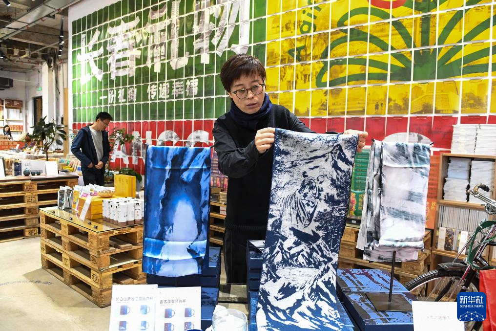 10月31日,在吉林省长春市,文创产品策划运营师史爽走进“长春礼物”概念店。
