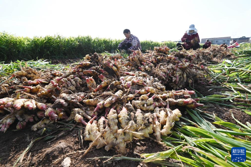 11月1日,山东省临沂市郯城县郯城街道的农民在收获生姜。