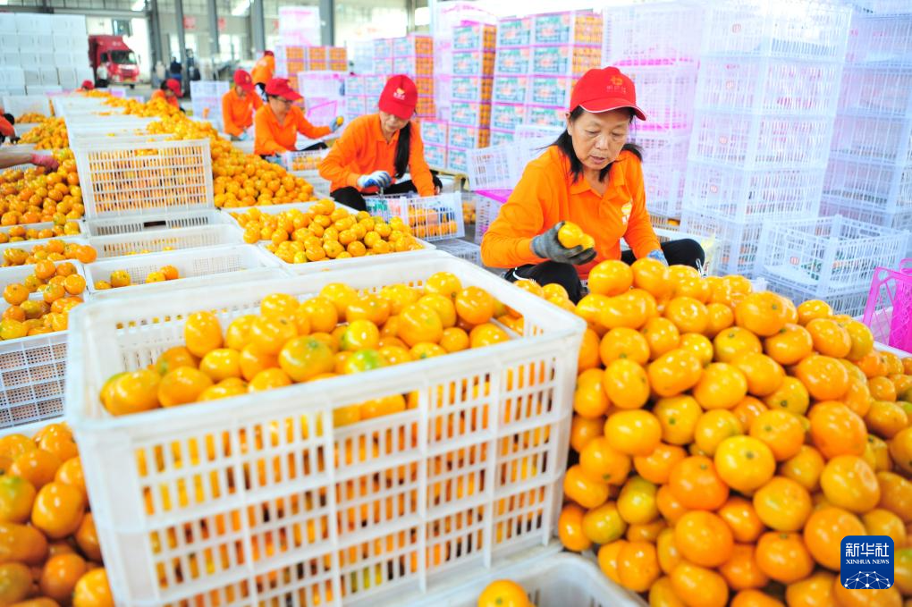 11月1日,湖北省宜昌市夷陵区星翔农产品专业合作联社社员在包装柑橘。