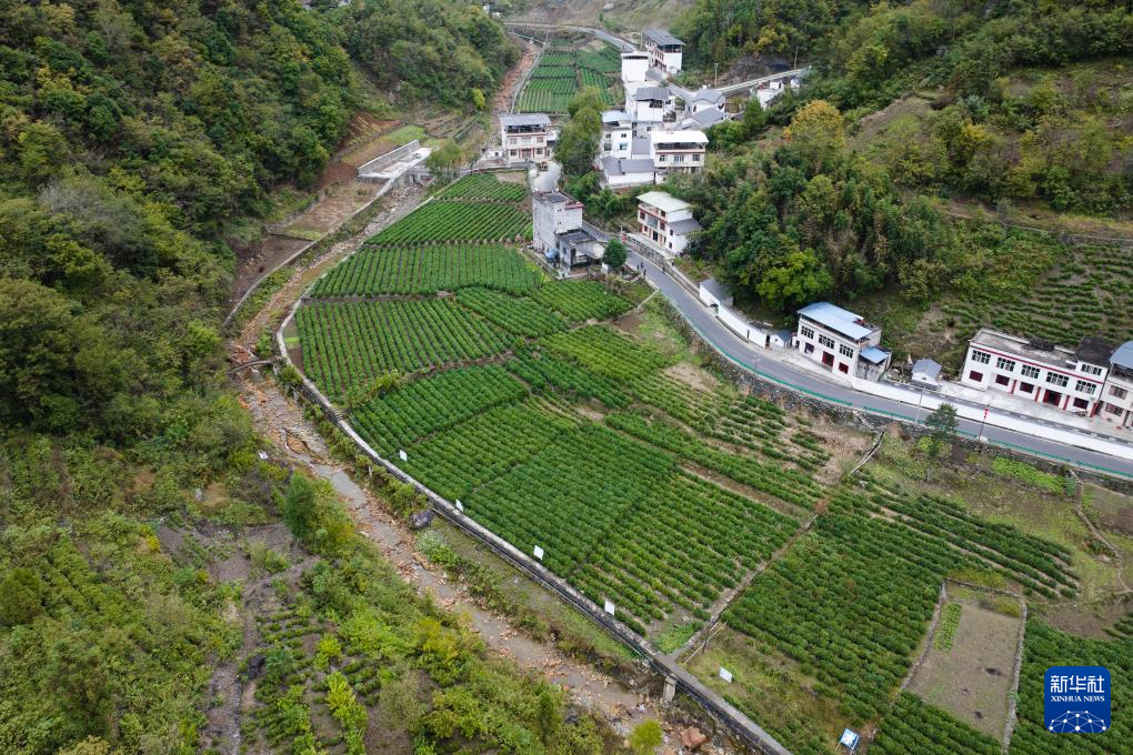 白河县卡子镇凤凰村发展的茶园(2024年10月21日摄,无人机照片)。