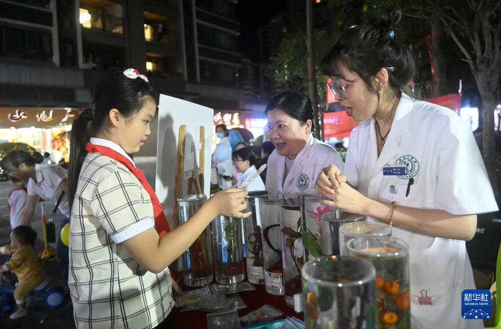 11月1日,广西骨伤医院、广西妇幼保健院和南宁市青秀区长虹社区卫生服务中心组织医务人员,来到南宁市长虹路万科城居民小区开展“中医药夜市”义诊活动,提供中医养生茶饮品尝、中药知识普及、中医传统疗法体验、中医健康咨询等服务,推动中医药文化走进社区,守护居民健康。