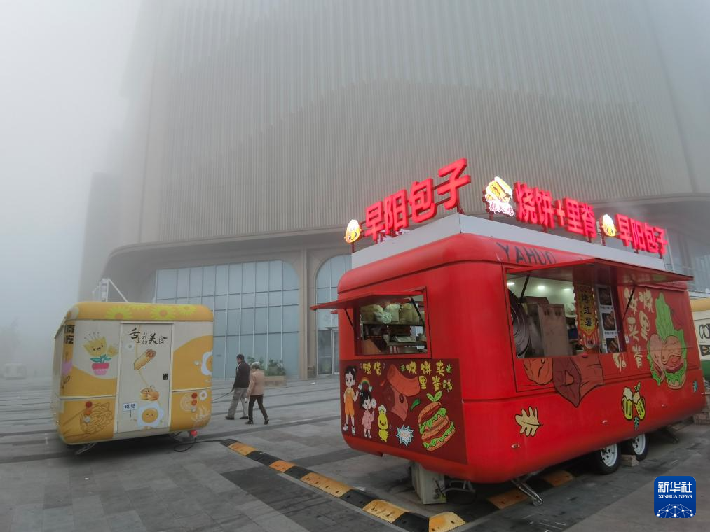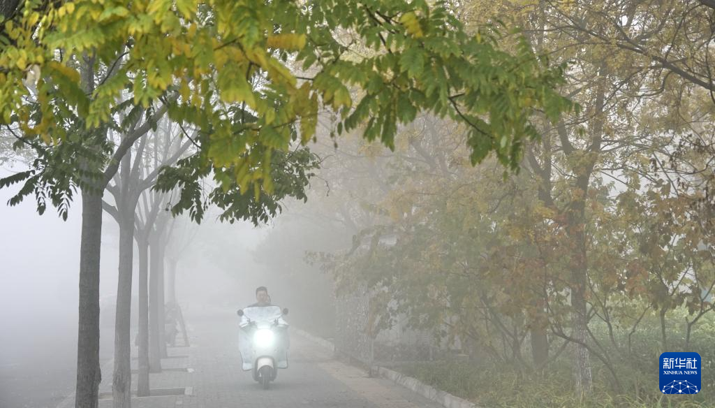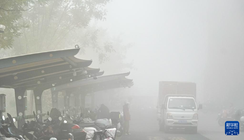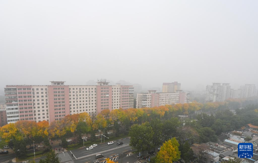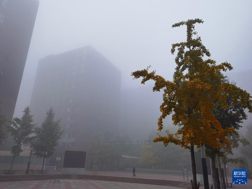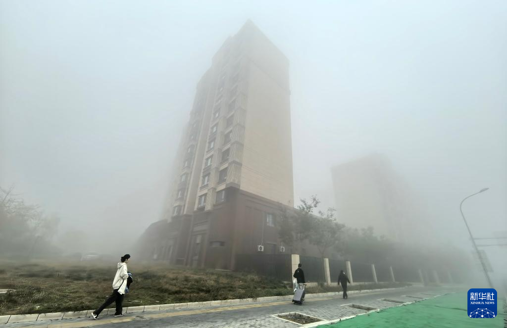 11月2日拍摄的大雾笼罩中的北京市朝阳区一处小区。