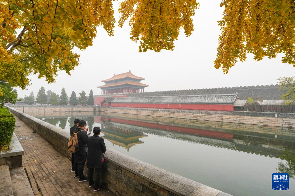 11月2日,游客在北京故宫神武门附近赏景。