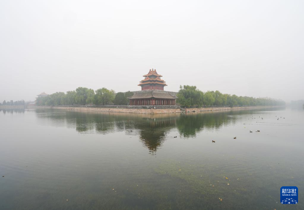 11月2日拍摄的雾中的北京故宫西北角楼。