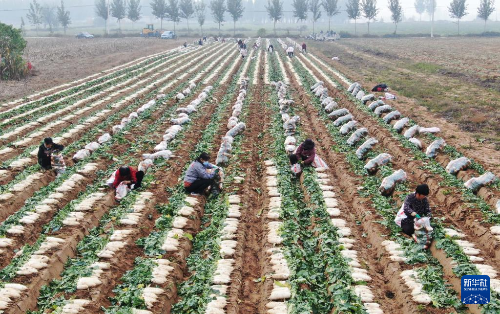 11月3日,河北省石家庄新乐市正莫镇正莫村农民在收获白萝卜。