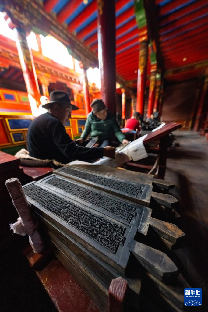 11月2日,德格印经院的工人在校对刚印完的印刷品。
