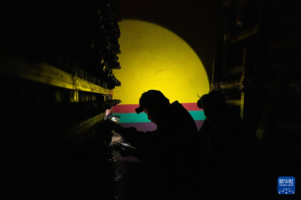 德格印经院的工人按照传统做法清洗、保养院藏印版(2021年10月3日摄)。