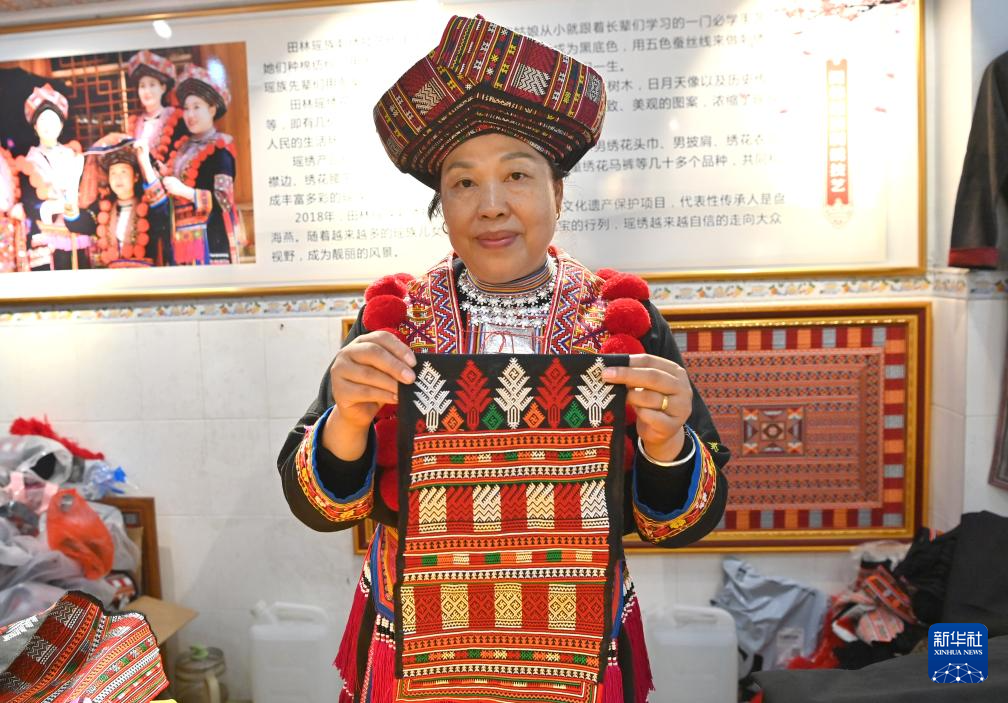 田林瑶族刺绣技艺传承历史悠久,其绣品图案精美,主要取材于瑶族群众的生产生活。2018年,田林瑶族刺绣技艺被列入广西壮族自治区非物质文化遗产保护名录。
