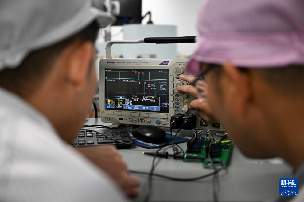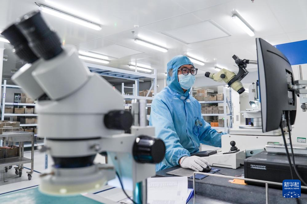 在位于江苏南通如东经济开发区的南通宁芯微电子有限公司,工作人员在测试车间内工作(11月2日摄)。