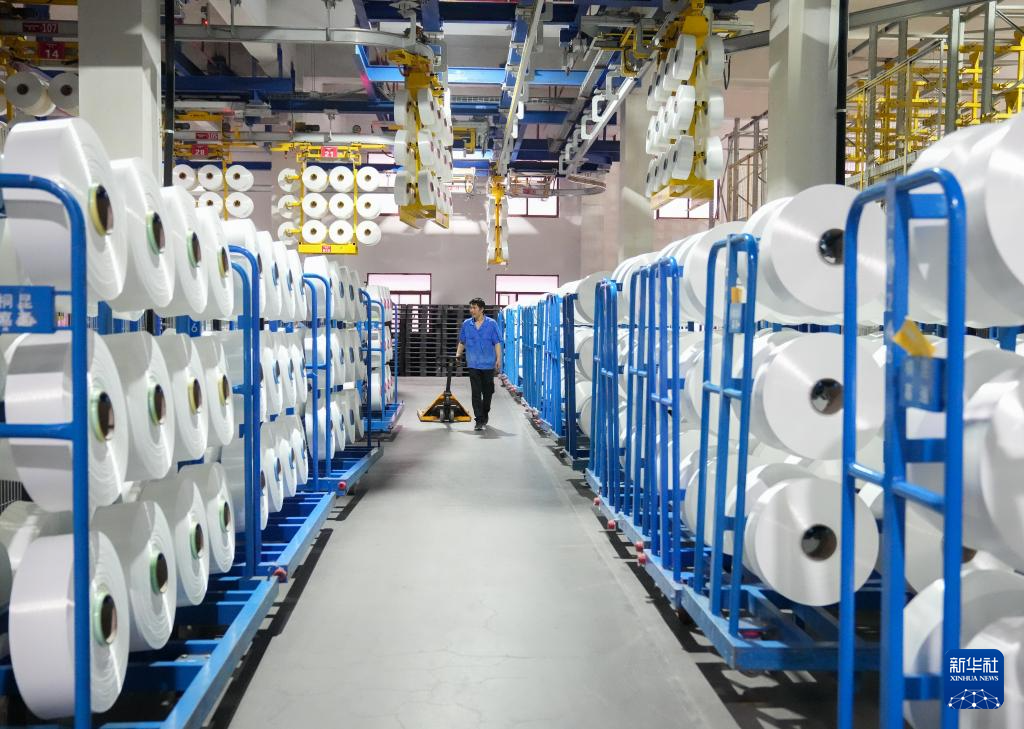 11月1日,工人在昆桐集团江苏嘉通能源有限公司聚酯纤维车间内工作。