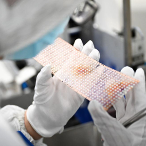 在位于江苏南通如东经济开发区的南通宁芯微电子有限公司,工作人员在生产车间内作业(11月2日摄)。