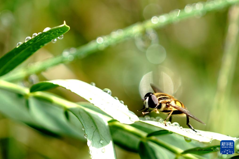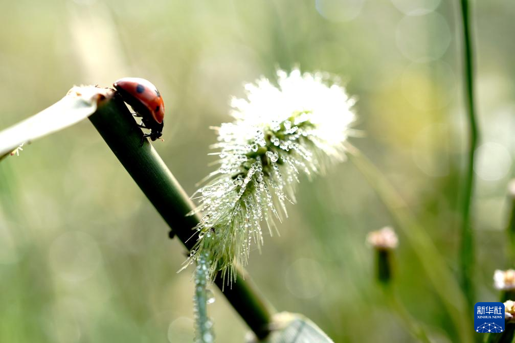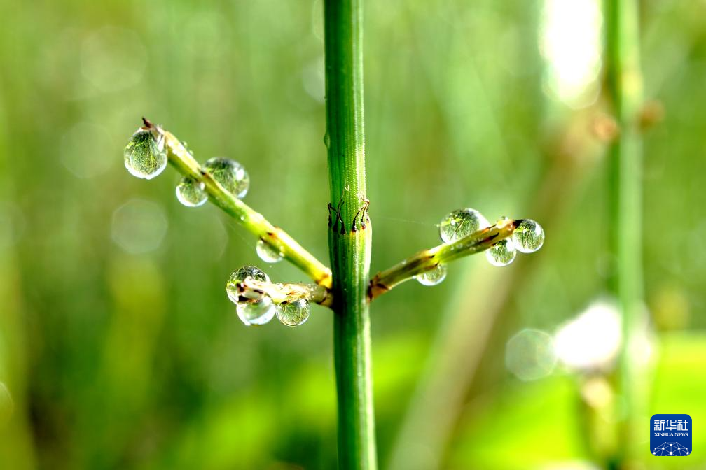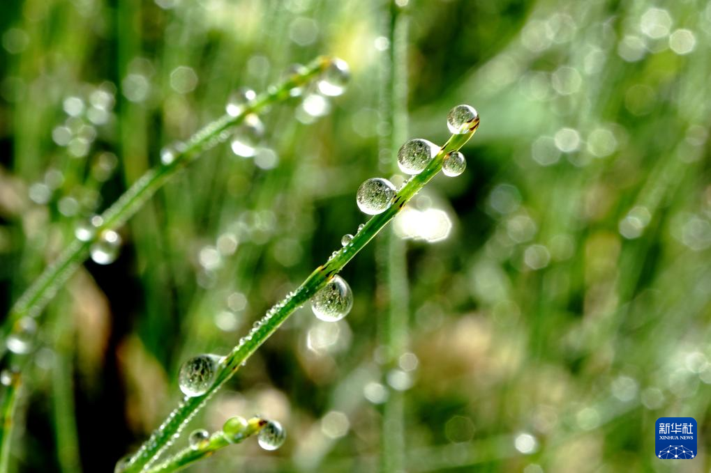 这是11月3日在上海市松江区砖新河畔拍摄的晨露。