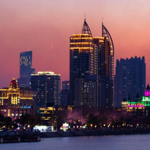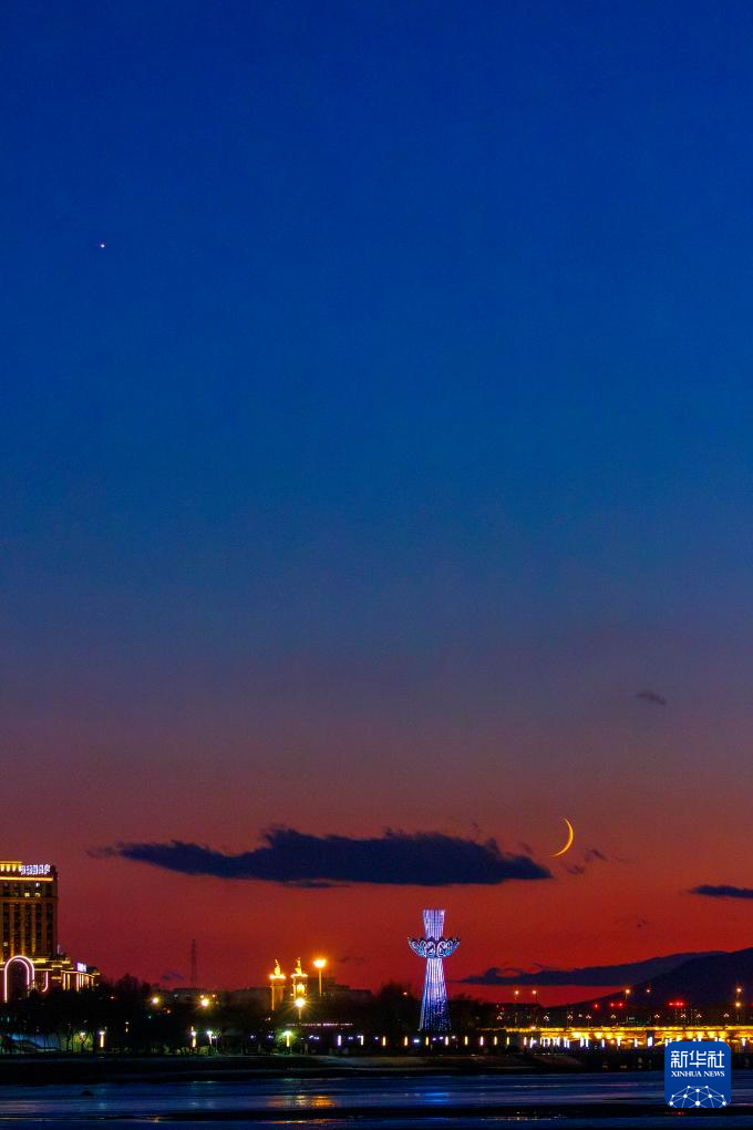 11月4日在黑龙江省牡丹江市拍摄的金星伴月。