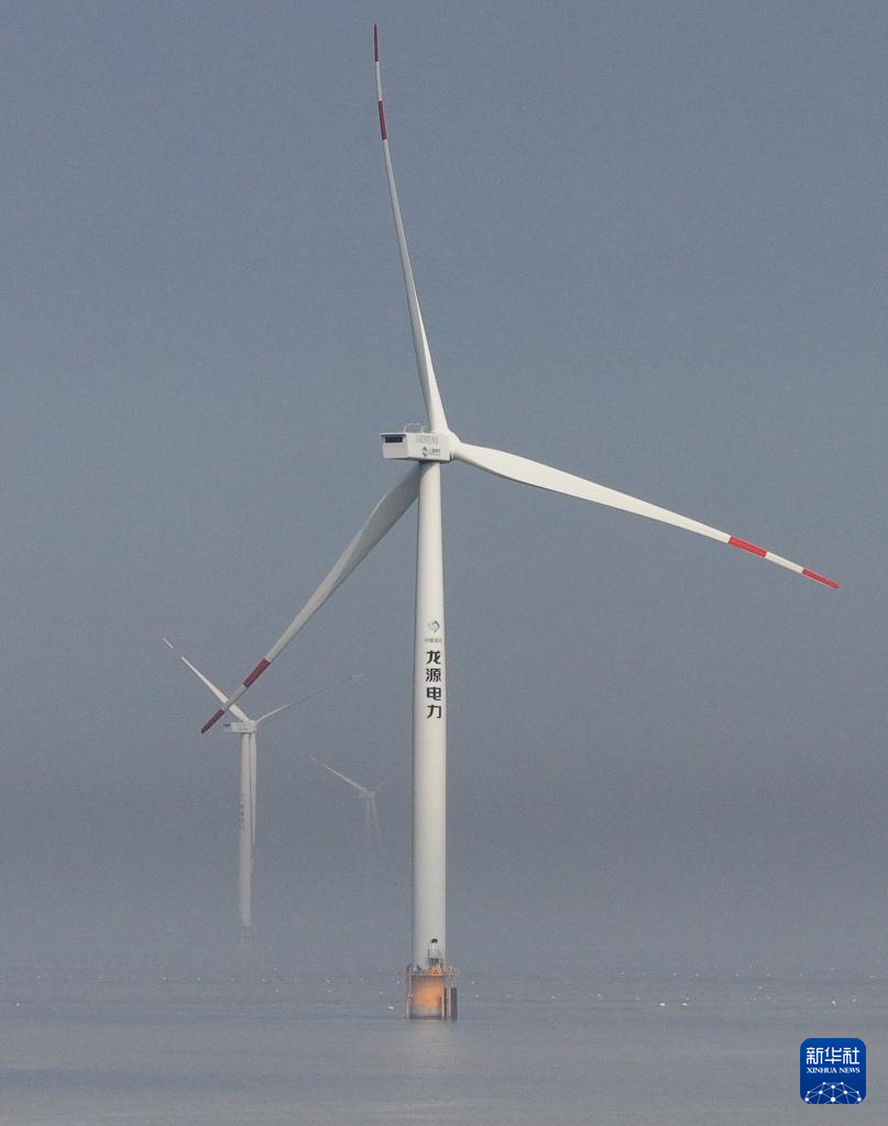 这是11月3日在江苏如东拍摄的海上风力发电机组(无人机照片)。