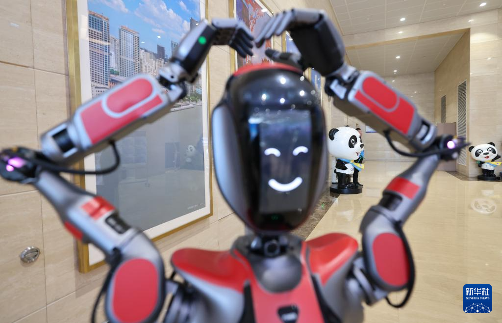 第七届中国国际进口博览会将于11月5至10日在上海举办。在位于国家会展中心(上海)的第七届进博会新闻中心,进博会吉祥物“进宝”和新闻中心的机器人“小新”一起欢迎前来采访的各国媒体记者。