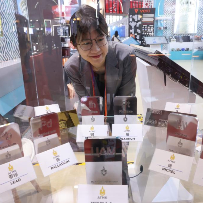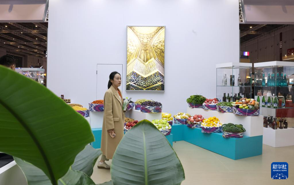 11月5日,一位女士在乌兹别克斯坦馆参观。