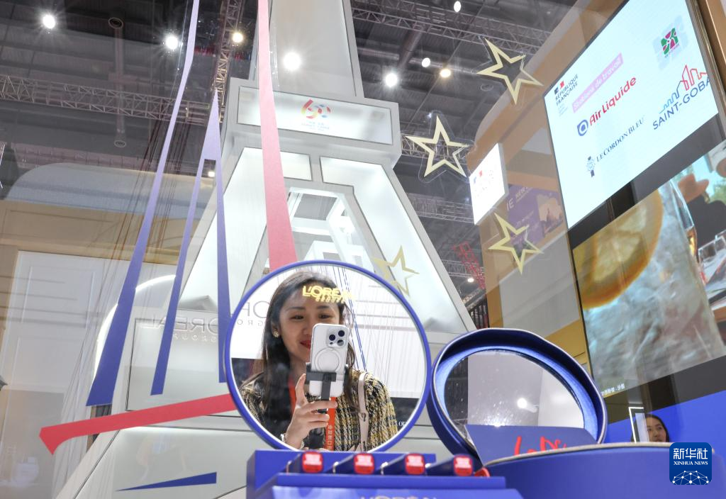 11月5日,参观者在法国馆拍照。