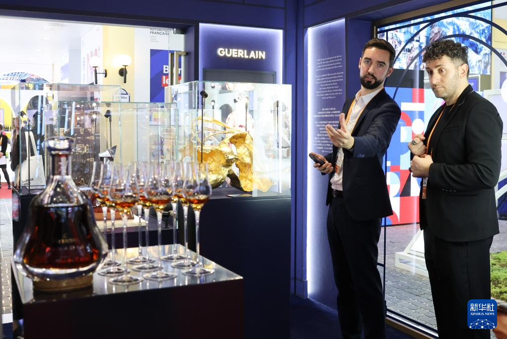 11月5日在法国馆拍摄的艺术品和酒。