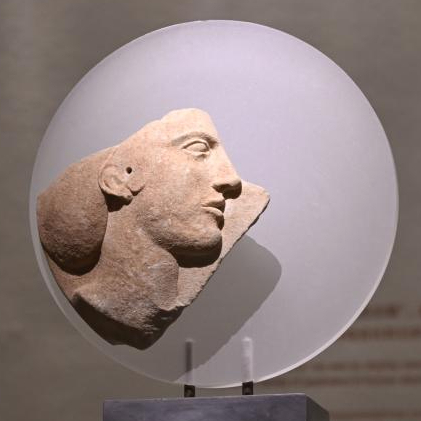 11月5日,观众观看大理石女性头像浮雕圆盘残片。