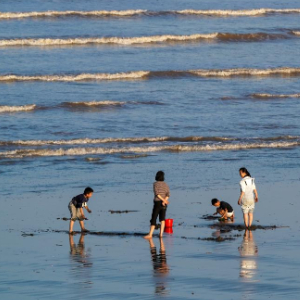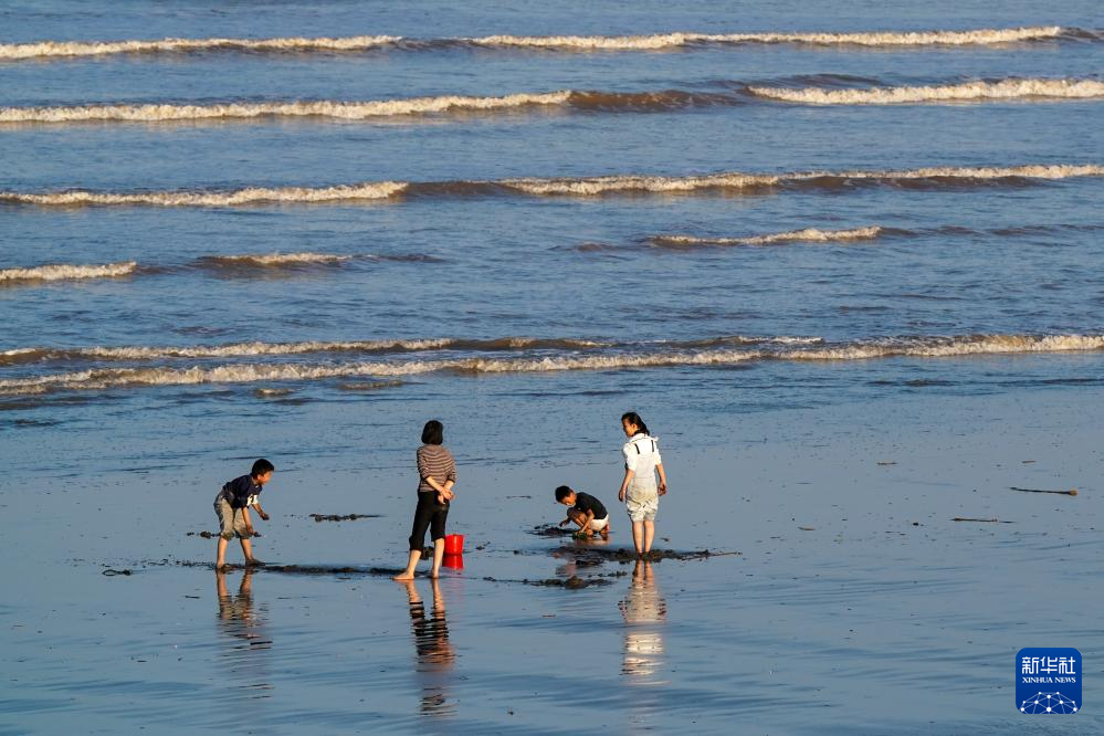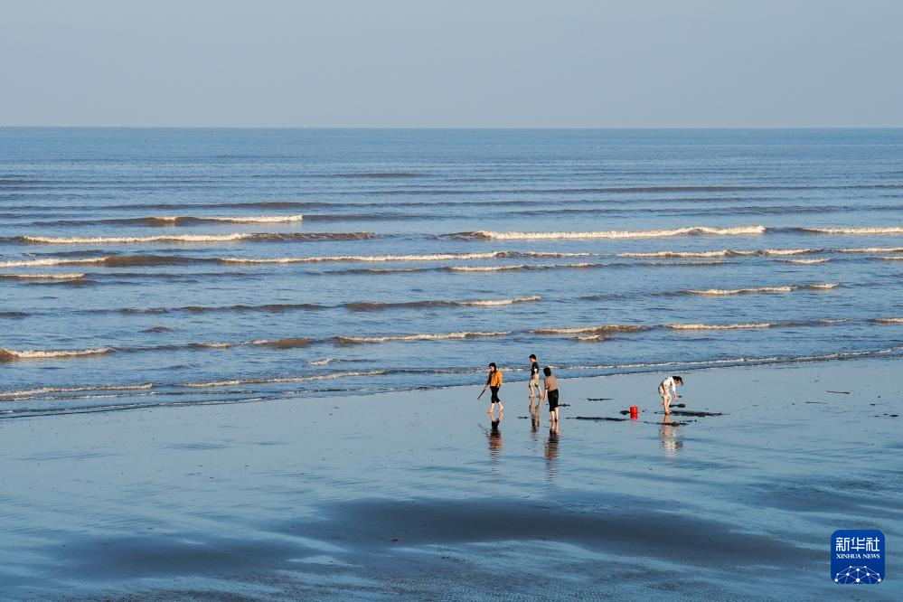 游客在启东市黄金海滩休闲游玩(11月3日摄)。