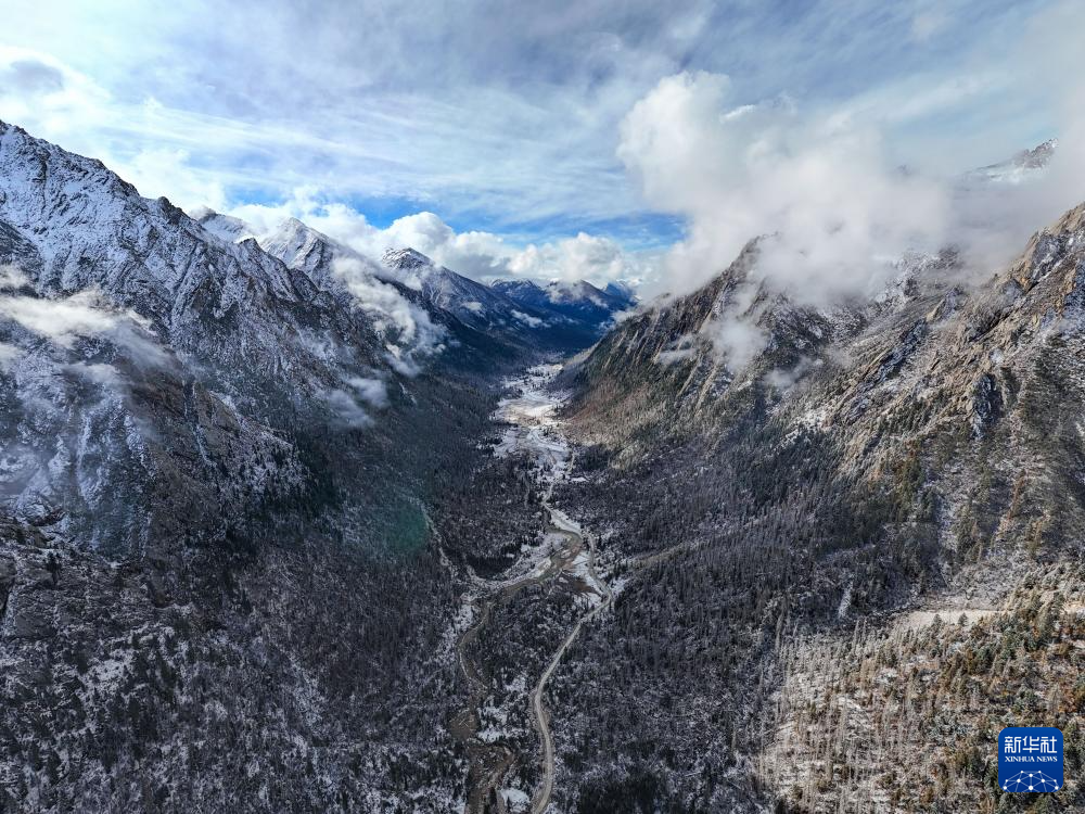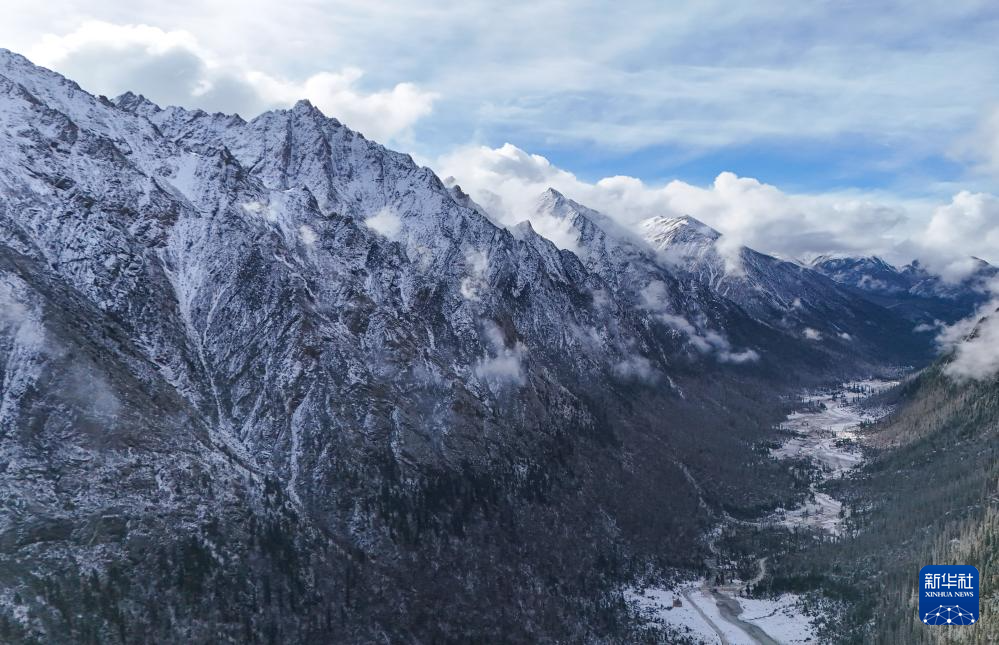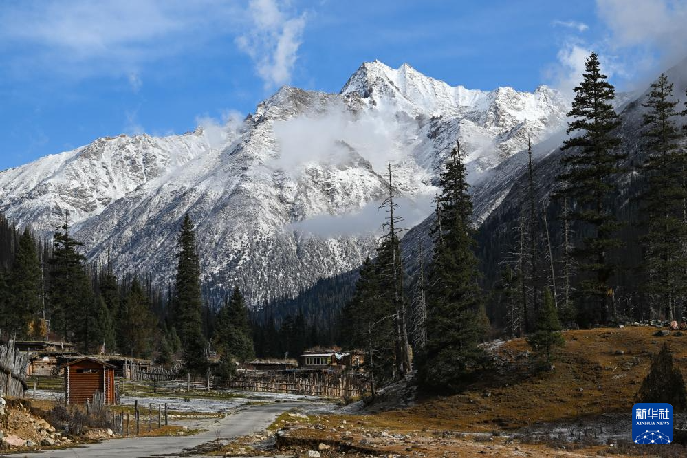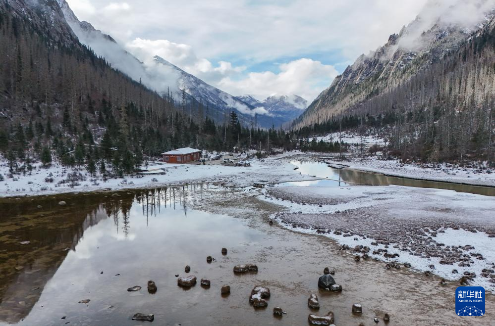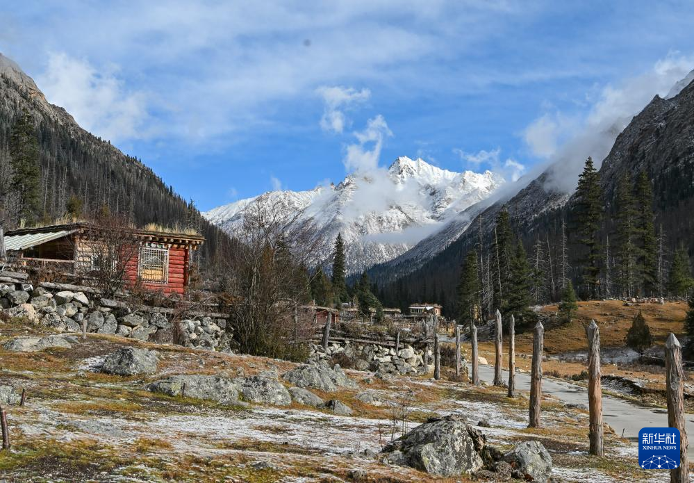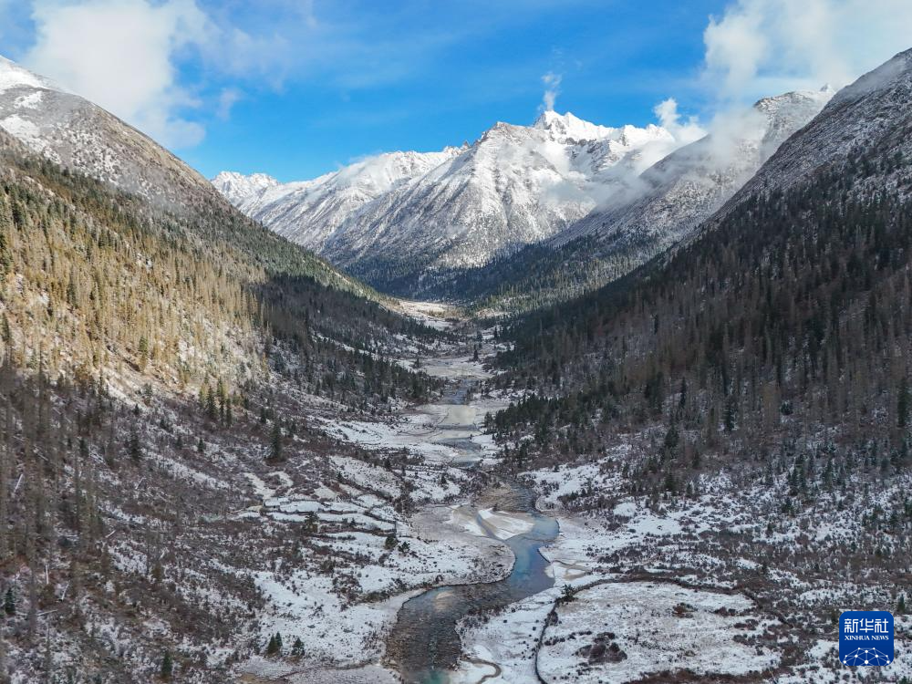 秋冬之交,四川省甘孜藏族自治州德格县境内的多瀑沟景区迎来一场降雪。旭日初升,日照金山。山巅云雾袅绕,河谷浅溪淙淙,藏房灌木掩映,勾勒出一幅美丽的生态画卷。这里珍稀动植物种类繁多,优美的原始森林为众多野生动物提供了自由栖息的家园。