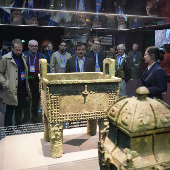 11月6日,嘉宾在中国考古博物馆内参观展览。