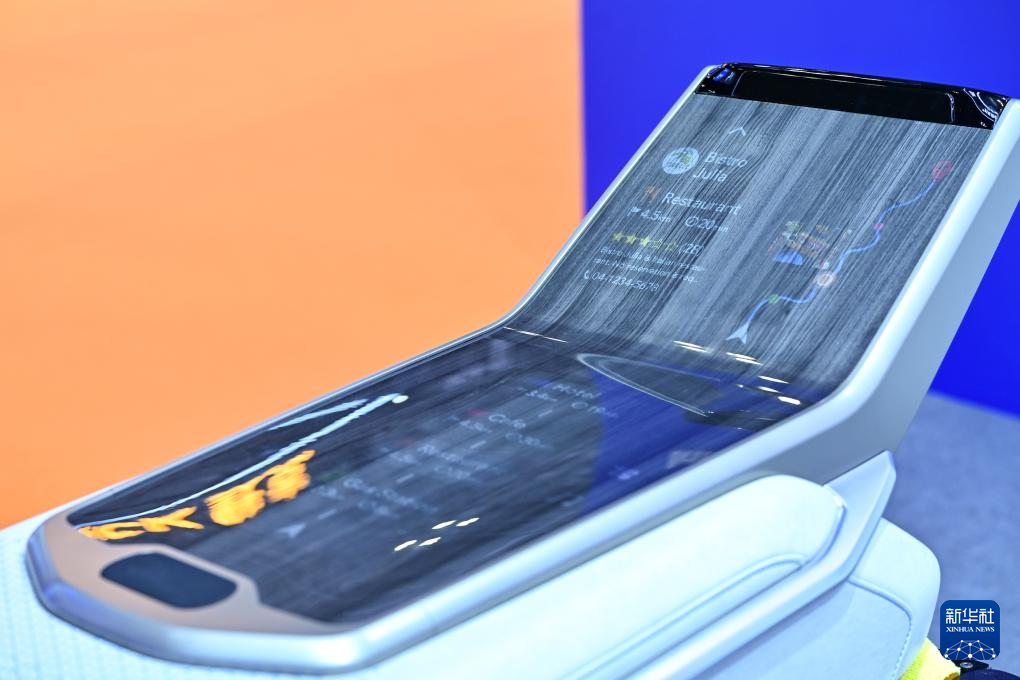这是11月6日在第七届进博会技术装备展区新材料专区东丽展台拍摄的一款使用多种新型材料制成的汽车智能中控台模型。