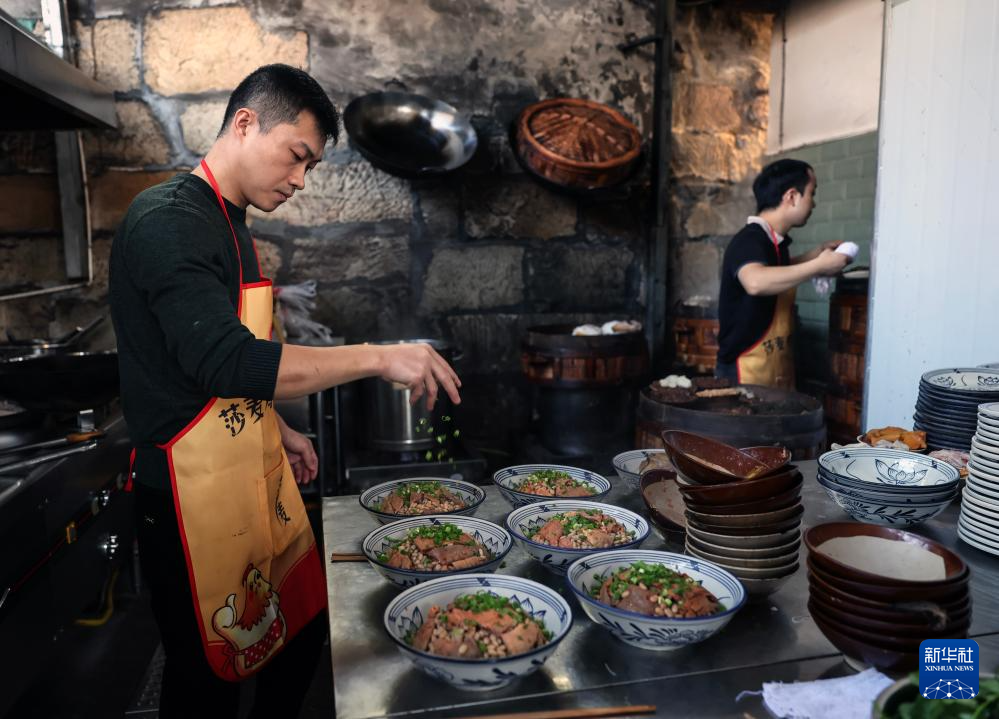 11月5日,厨师在制作恩阳古镇著名菜肴“十大碗”。