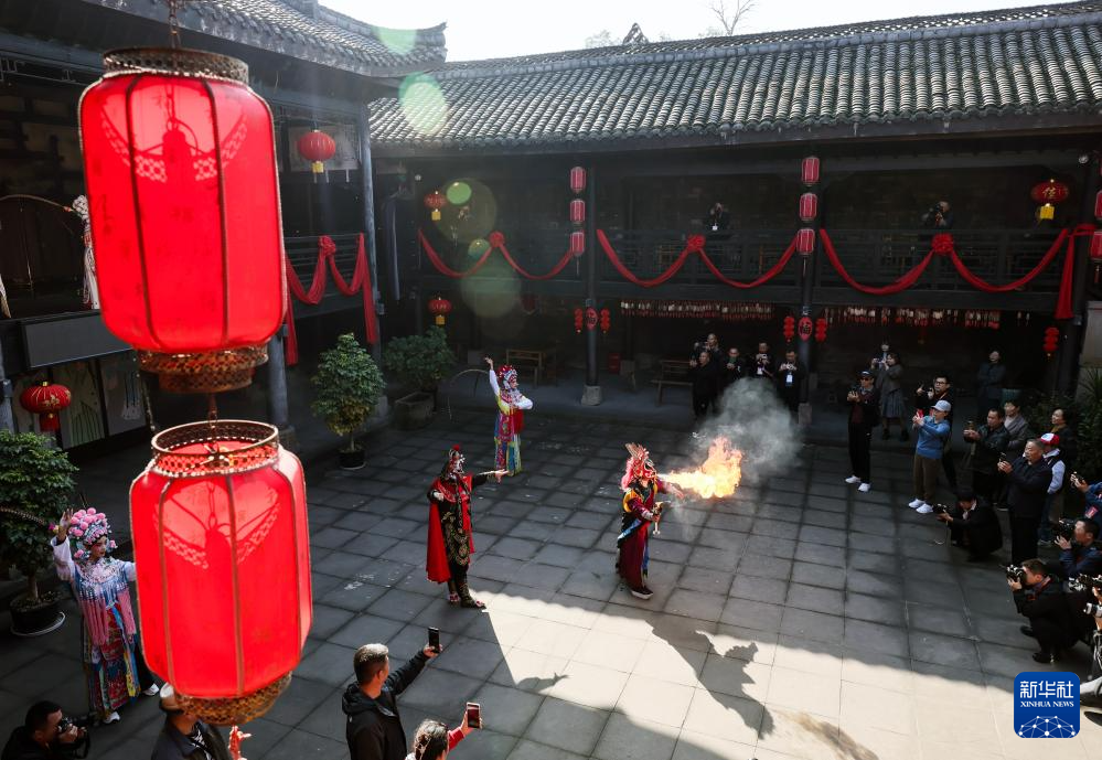 11月5日,两名川剧演员在恩阳古镇准备演出。