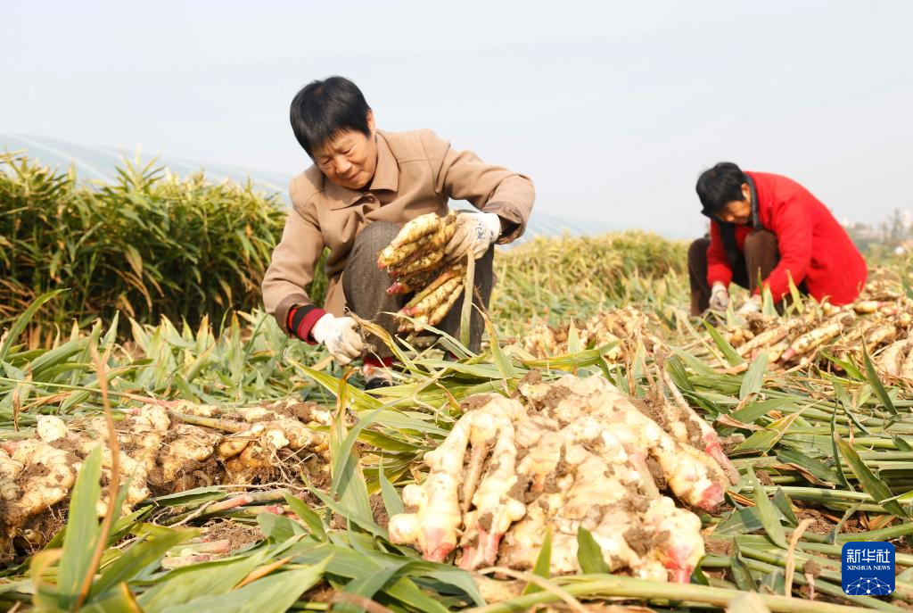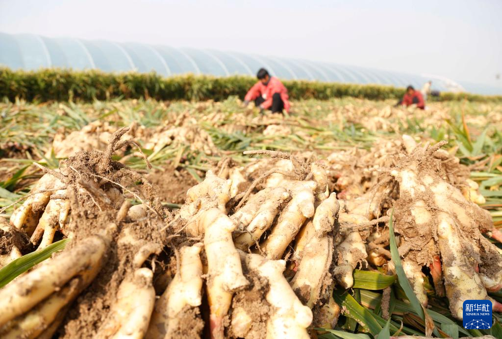 11月7日,在河北省邢台市南和区贾宋镇,农民在收获生姜。