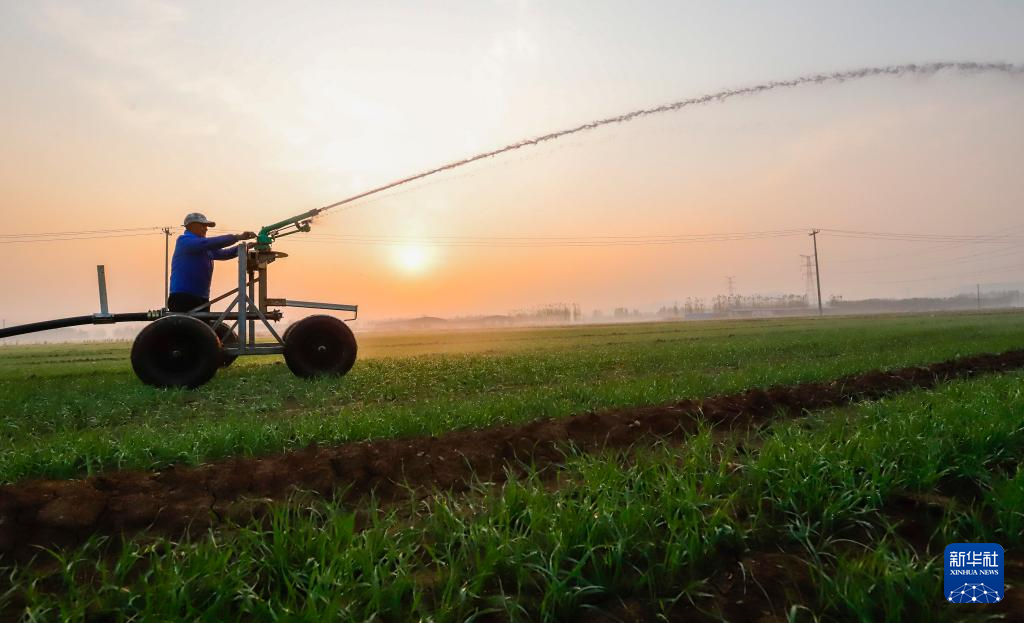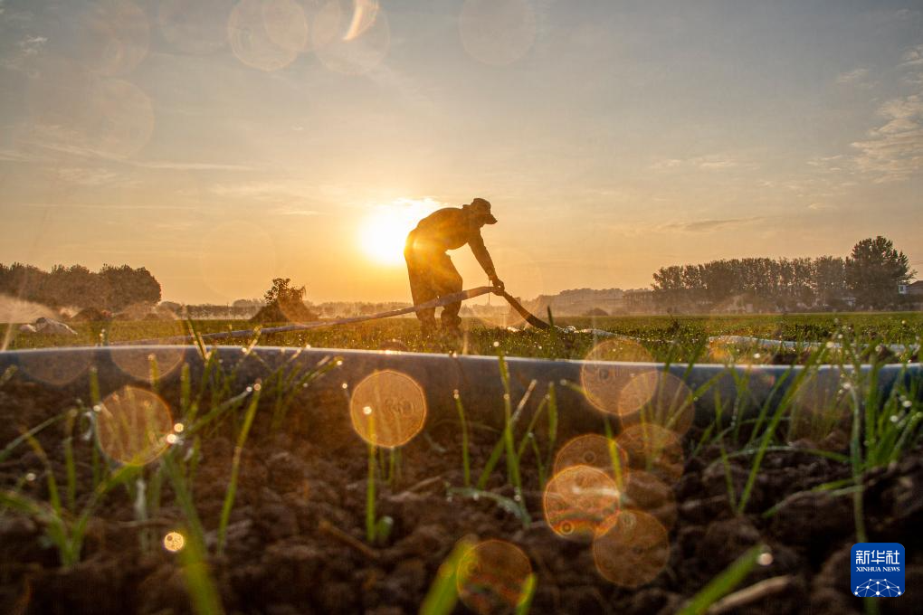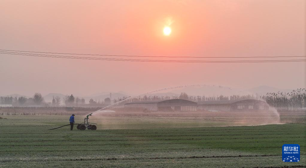 11月7日,河南省商丘市夏邑县会亭镇农民在麦田浇水。