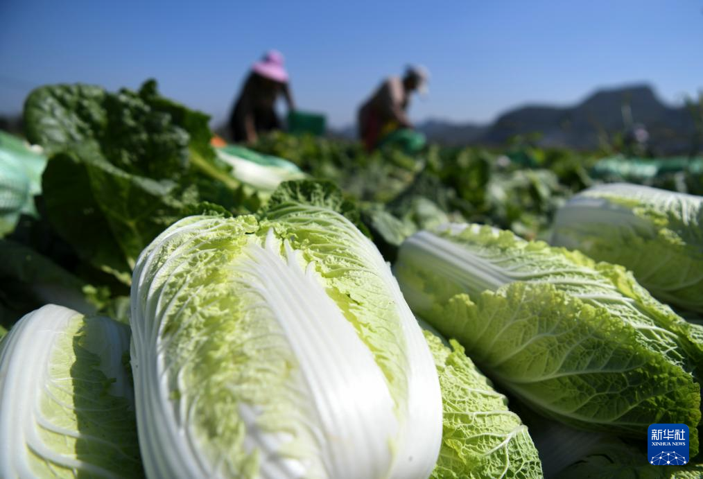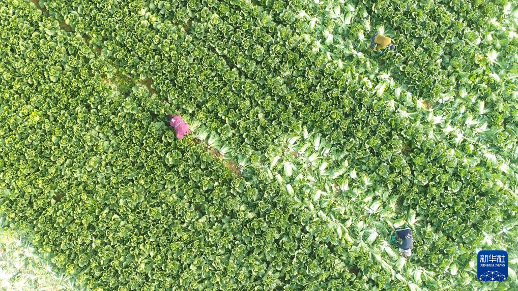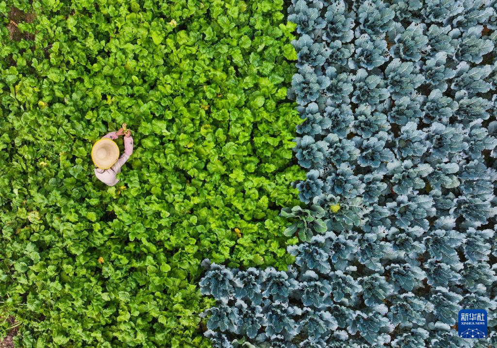 11月7日,湖南省永州市江永县潇浦镇的农民在采收蔬菜。