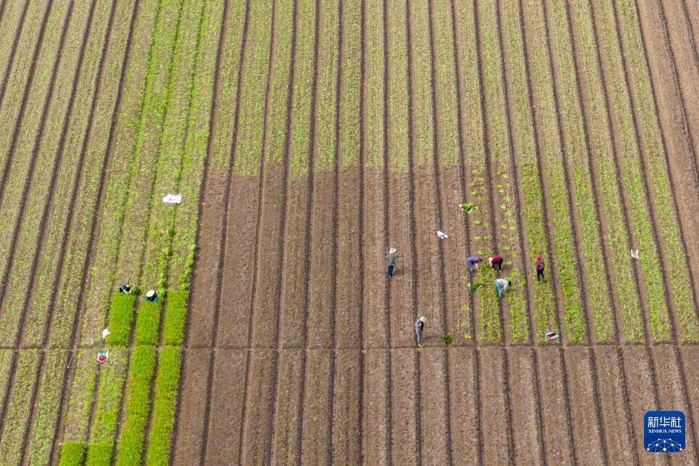 11月7日,浙江省余姚市黄家埠镇横塘村农户在田间种植芥菜(无人机照片)。