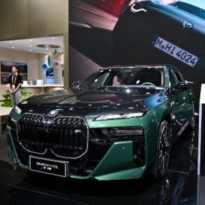 11月7日在第七届进博会汽车展区拍摄的宝马i7新能源车型。