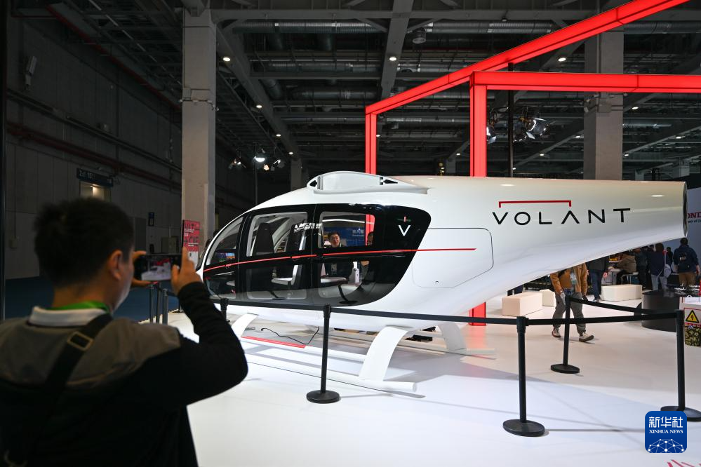 11月7日在第七届进博会汽车展区拍摄的时的科技E20 eVTOL电动垂直起降飞行器。