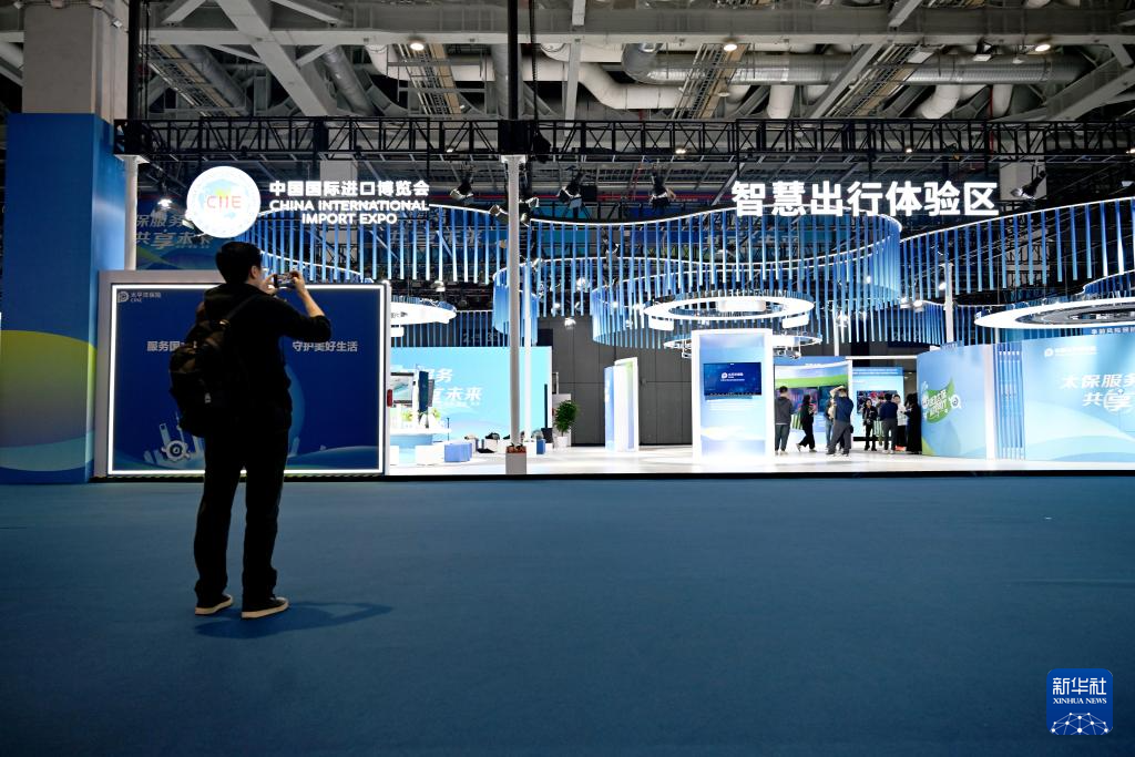 11月5日,参观者在第七届进博会汽车展区智慧出行体验区外拍照。
