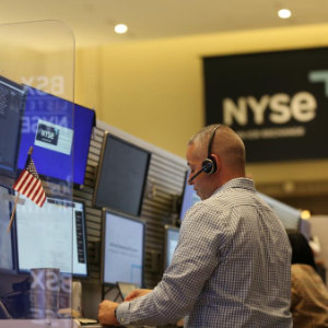 11月6日,一名交易员在美国纽约证券交易所交易大厅内工作。