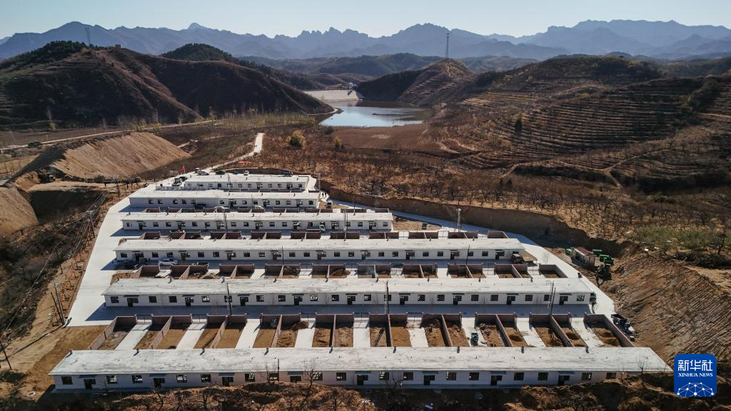 这是11月5日拍摄的辽宁省葫芦岛市绥中县祝家沟村集中安置重建住房(左侧白色房屋,无人机照片)。